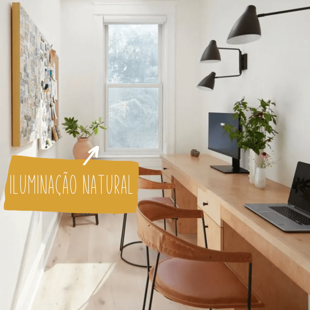 A iluminação natural é perfeita para trazer um pouco de motivação para o trabalho. Busque um ponto que entre uma boa luz e transforme o seu cantinho do trabalho.