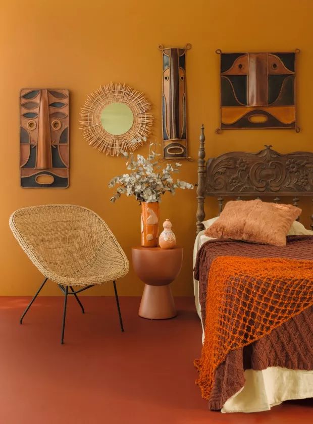 As cores complementares ficam em lados opostos do círculo cromático, como azul e laranja ou roxo e amarelo. Elas criam contraste e deixam o ambiente mais vibrante e dinâmico. A dica é usar uma cor como base e inserir a complementar em pontos estratégicos, como almofadas, quadros ou objetos decorativos.