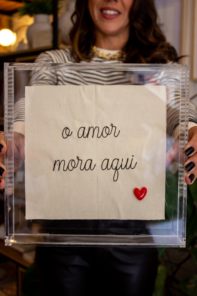 • Quadro Acrílico Bordado O Amor Mora Aqui Mimo Galeria